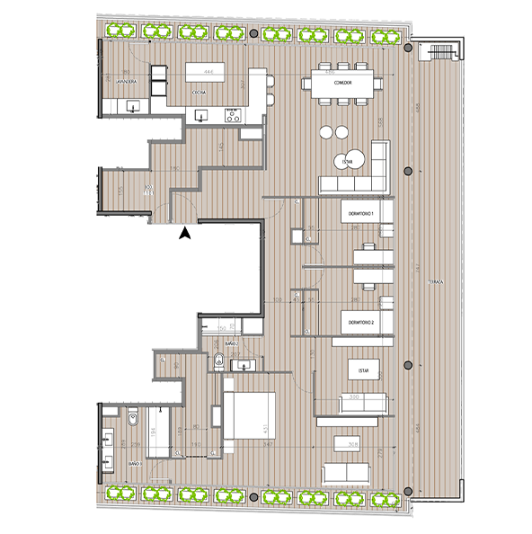 - Altura interior de 2,45 m, superior al estándar del mercado.